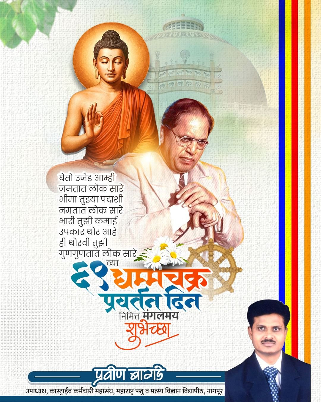 14 ऑक्टोबर हा दिवस निव्वळ तारखेतला आकडा नाही. तो आहे, गुलामीतून मुक्तीचा विजयदिवस, मानवतेच्या धर्माचा पहिला जयघोष आणि आगामी पिढ्यांना दिशा देणारा दीपस्तंभ. म्हणूनच धम्मचक्र प्रवर्तन दिन आपण 14 ऑक्टोबरलाच साजरा करतो. कारण तो दिवस म्हणजे बाबासाहेबांनी दिलेला समतेचा अमर दीप, जो कधीही विझणार नाही. या दिवशी दीक्षाभूमीवर एकत्र येणारे लाखो अनुयायी हा केवळ उत्सव साजरा करत नाहीत; तर ते आपली माती, आपला अभिमान, आपली क्रांती पुन्हा अनुभवतात. म्हणूनच 14 ऑक्टोबरला ‘धम्मचक्र प्रवर्तन दिन’ साजरा करणे म्हणजे बाबासाहेबांच्या क्रांतीला अभिवादन करणे आणि आपल्या भविष्याचा मार्ग ठरवणे होय. सर्वांना धम्मचक्र प्रवर्तन दिनाच्या मंगलमय शुभेच्छा!