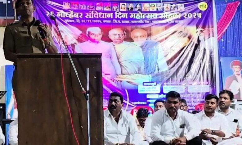 संग्रामपुर [प्रतिनिधी] आपल्या देशातील विविध धर्म जातीच्या नागरिकांना एकत्रित करणारी घटनाकार डॉ बाबासाहेब आंबेडकर यांची राज्य घटना आहे आपल्या संविधानातर्गत देशातील सर्व न्यायलय सह संसद राज्य विधिमंडळ काम करतात संविधानाने तुम्हा आम्हा सर्वांना अनेक हक्क दिले त्यामुळे आपण सर्व स्वातंत्र्य समानतेने जीवन जगतो नागरिकांमध्ये घटनात्मक मुल्यांबद्दल आदराची भावना वाढवणे हा संविधान दिनाचा मुळ उद्देश असुन संविधान दिन या दिवसांच्या स्मरणार्थ म्हणुन शासकिय निमशासकीय कार्यालयात संविधान दिन साजरा केला जातो संविधान निर्माते डॉ बाबा साहेब आंबेडकर यांच्या स्वप्नातील राष्ट्र घडविणे लोकशाहित प्रत्येक नागरिकांचे आद्य कर्तव्य असल्याचे प्रतिपादन ठाणेदार संदिप काळे यांनी बावनबीर येथील जि प शाळा प्रांगणात तथागत नवयुवक मंडळ , भिम टायगर , सावित्रीबाई फुले महिला मंडळ यांच्या संयुक्त विद्यमाने आयोजीत संविधान महोत्सव सोहळा प्रसंगी केले ते पुढे म्हणाले कि संविधानामुळेच आपण स्वतंत्र देशाचे स्वतंत्र नागरिक आहोत. राज्यघटनेने दिलेले मुलभूत अधिकार हे आपली ढाल म्हणून काम करून आपल्याला हक्क बहाल करत असले. तर, त्यात दिलेली मुलभूत कर्तव्ये आपल्याला आपल्या जबाबदाऱ्यांची आठवण करून देतात प्रत्येक नागरिकांने मुलभुत कर्तव्ये पार पाडण्याचे आव्हान शेवटी ठाणेदार काळे यांनी केले